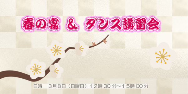 季節の行事として楽しみにしてくださっていた「春の宴&講習会」ですが、 3月8日は「名古屋ウィメンズマラソン」開催に伴い、スタジオ周辺で交通規制が行われることになりました。 ご来場の皆さまの安全と移動のしやすさを考慮し、今…